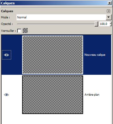 Gimp crée un nouveau calque et on remarque que l’on peut cacher l’arrière-plan (en cliquant sur l’œil), pour ne laisser que le calque que l’on vient de créer.