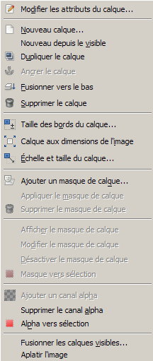 Il y a un certain nombre de fonctions qui sont accessibles en ce qui concerne les calques. Un clic droit sur l’un des calques ouvre le menu contextuel.